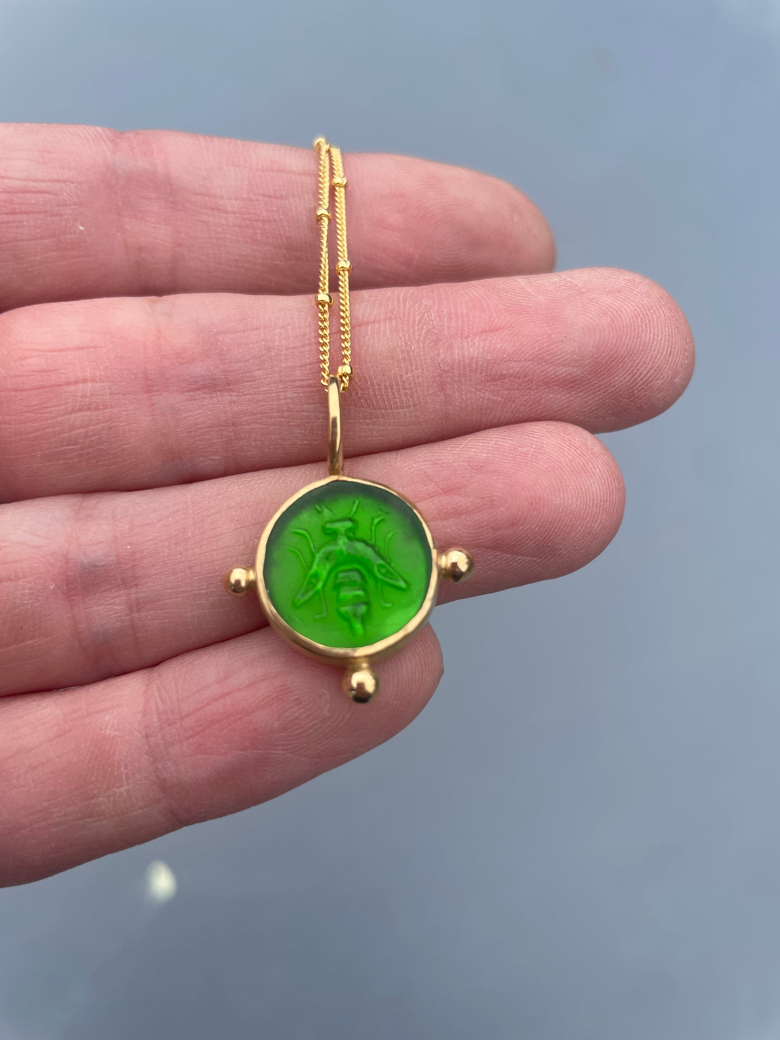 * Chain - This hangs on an 18inch durable Gold Vermeil chain